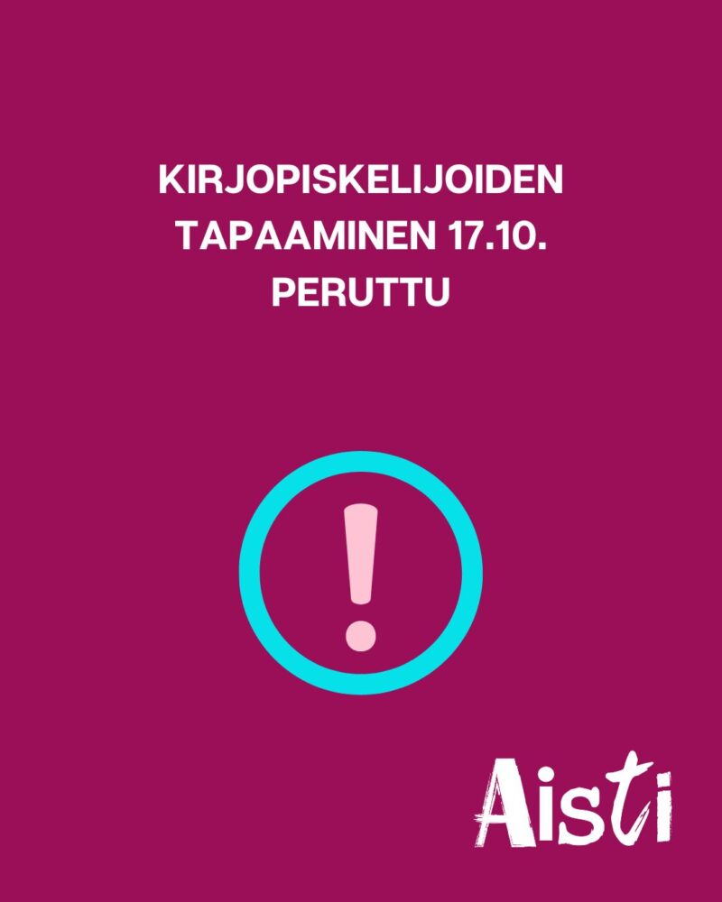 Huominen KirjOpiskelijoiden tapaaminen 17.30–19.30 on valitettavasti peruttu. Tervetuloa mukaan taas 31.10.!