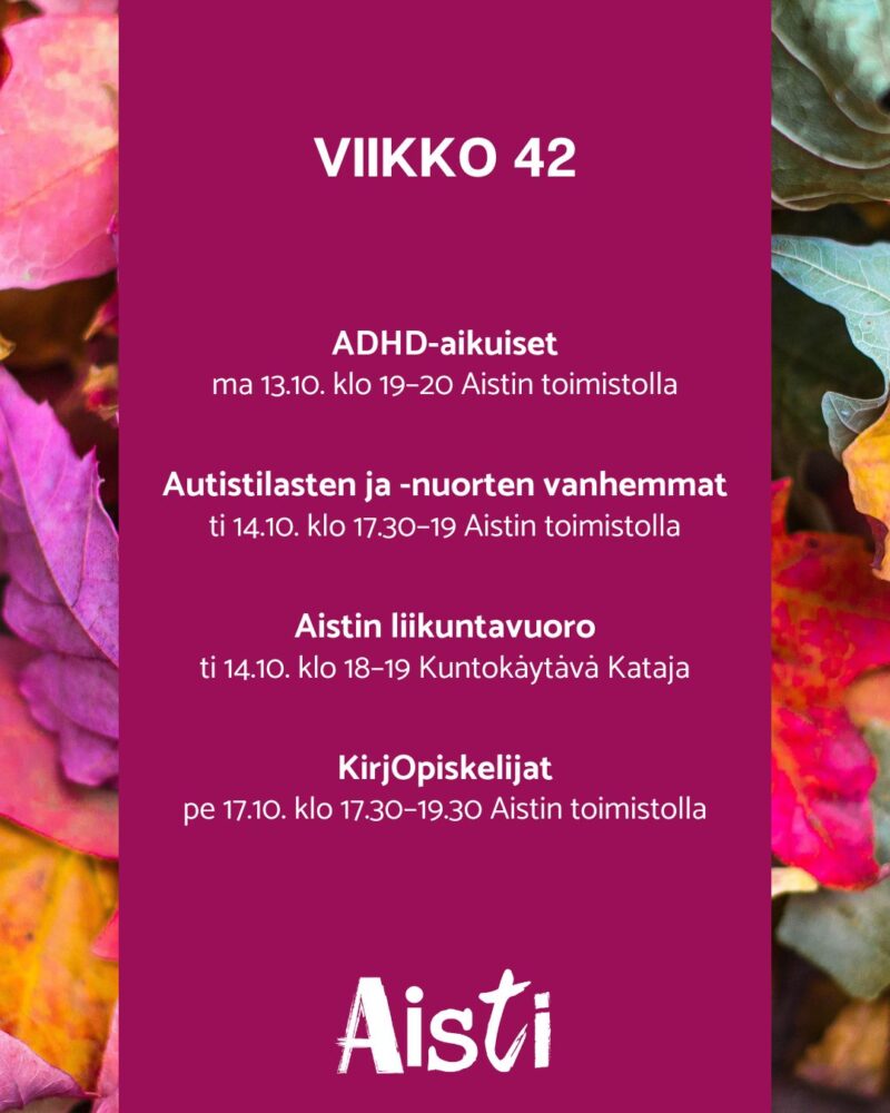 Autismikirjon lasten ja nuorten vanhemmat ti 30.9. klo 17.30–19 Aistin toimistolla