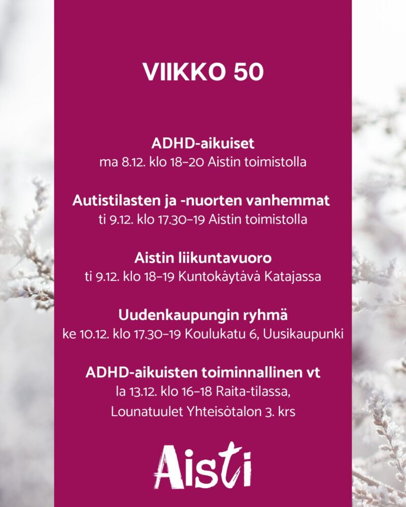ADHD-aikuiset ma 8.12. klo 18–20 Aistin toimistolla