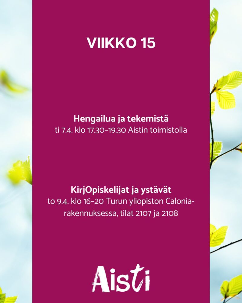 Hengailua ja tekemistä ti 7.4. klo 17.30–19.30 Aistin toimistolla
